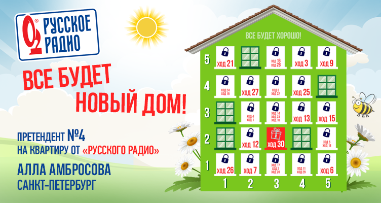 В понедельник игра продолжится! Слушайте эфир, ловите специальный сигнал акции «Всё будет Новый дом», участвуйте и выиграйте КВАРТИРУ в своём городе от «Русского Радио»!