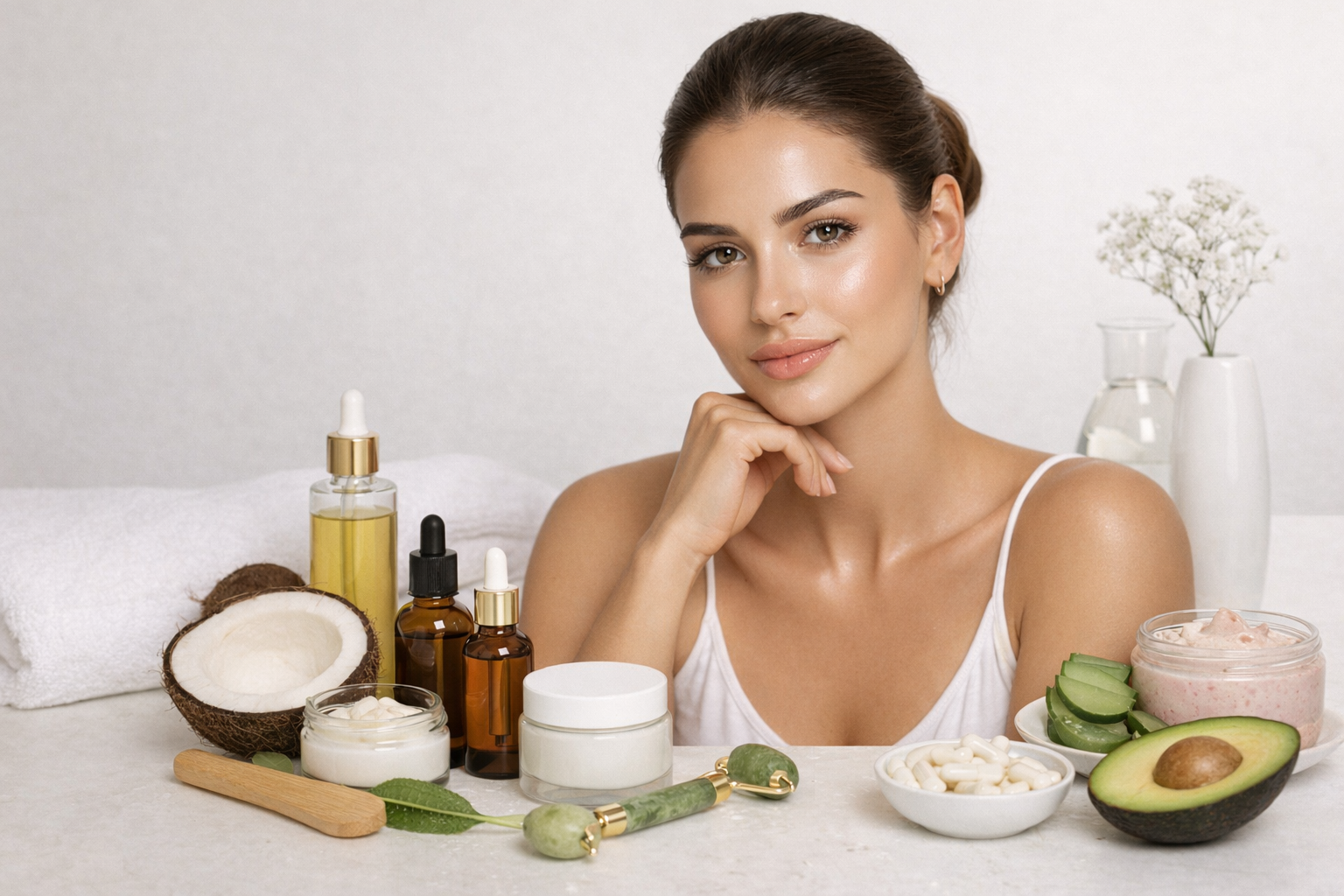 Ключевую роль играет водный баланс. Старайтесь выпивать не менее 1.5-2 литров чистой воды в день. Это поможет вывести токсины и увлажнить кожу. Также не забывайте про важность витаминов для волос и кожи, которые можно получить как из еды, так и из комплексов после консультации с врачом.