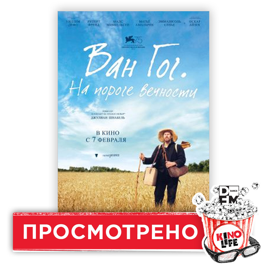 Никому прежде не удавалось показывать Ван Гога так и таким. И в этом смысле режиссеру Джулиану Шнабелю, я считаю, мы должны рукоплескать. И не только за собственно визуальный ряд, в котором умопомрачительно все: Дефо-Ван Гог — сидит ли он на скале или в тени деревьев, идет ли по полю, едет ли на телеге или стоит, задрав голову в своей соломенной шляпе, разношенные ботинки, снятые с нижней точки, с самого пола... лица, лица, лица нарочитые крупняки перекрывающие кадр, одеревеневшие прошлогодние подсолнухи — все это у меня на протяжении всего 1 часа 50 минут вызывало спазм дыхательных путей — до того это прекрасно. Но еще стоит благодарить Шнабеля за то, что теперь много людей выйдет из зала и загуглит «как умер Ван Гог» и прочтёт (почти наверняка с изумлением), что кроме общеизвестной версии самоубийства, есть и другая — она появилась в 2011 году и ей американские биографы художника Стивен Найфех и Грегори Уайт Смит посвятили аж 900-страничный труд. Именно эта версия и легла в основу финала фильма «Ван Гог. На пороге вечности»